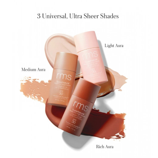 Το Medium Aura είναι μια εξαιρετικά διαφανής απόχρωση που είναι πανέμορφη σε όλους τους τόνους δέρματος! Είτε δροσερά (cool) είτε ζεστά (warm) χρώματα, η Rose-Marie δημιούργησε αυτή τη φόρμουλα για να είναι καθολικά κολακευτική ανεξάρτητα από υποτόνους. Διορθώστε και προστατέψτε το πρόσωπο και το λαιμό σας με mineral SPF 30 UV ευρέος φάσματος, για ομοιόρφη κάλυψη.