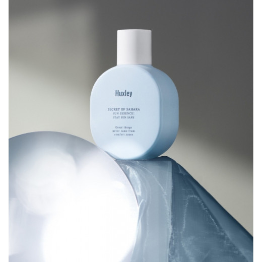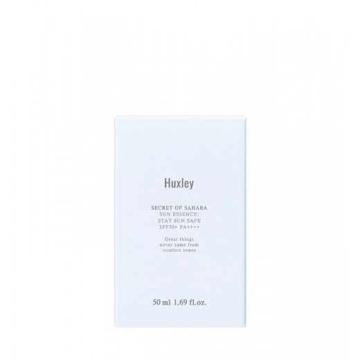 Huxley Sun Essence Stay Sun Safe is an advanced quimical filter sunscreen that combines broad-spectrum UV protection with moisturizing and skin-repairing benefits. Its vegan formula features chemical filters that provide SPF50+, offering reliable defense against both UVA and UVB radiation.
